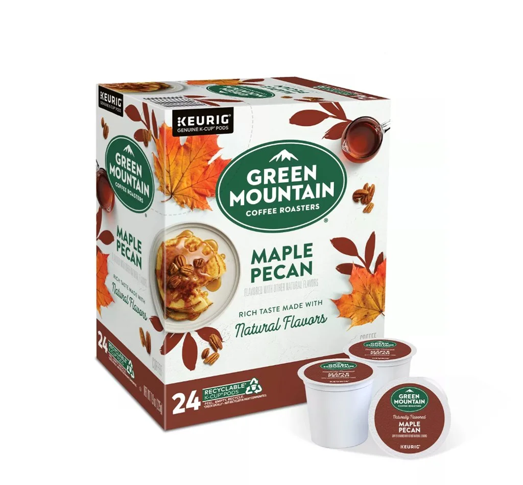 Green Mountain Coffee Roasters needed a refresh for their seasonal flavors. I was excited to take on this project with a more photographic approach compared to their previous illustrated designs. The photography increased flavor appeal and help the packaging to stand out on shelf. The designs are easily customized to be appropriate for a variety of seasons and flavors.